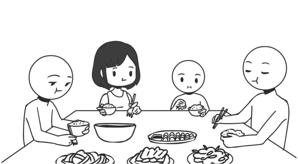 Domics reminisces and gives a visual representation of his family dinners at home⁴⁰